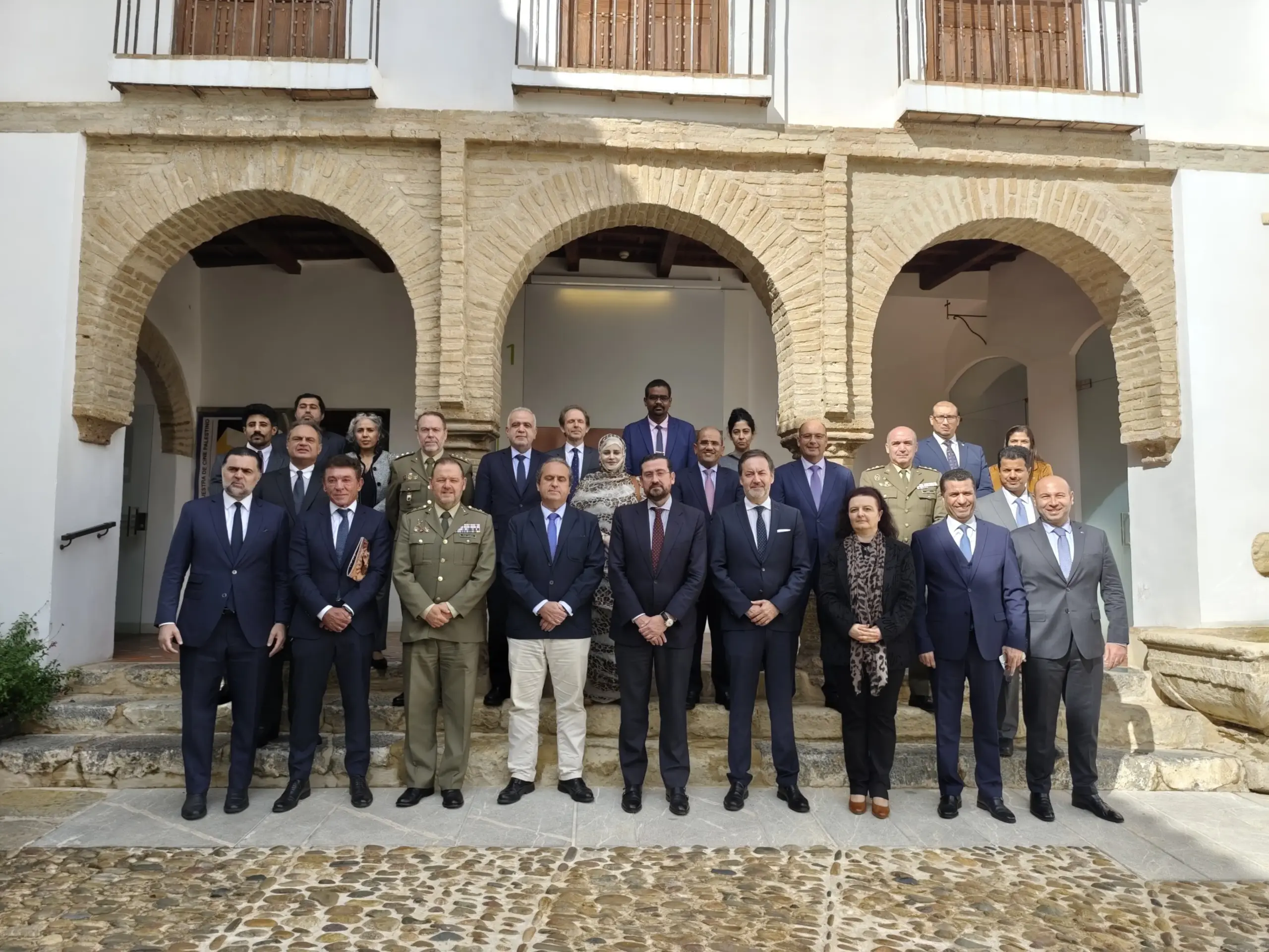 En el primer programa de la cita, a primer ahora de la mañana tuvo Foto de familia en el patio principal de Casa Árabe, con los embajadores asistentes a la reunión, el director general de Casa Árabe, Miguel Moro Aguilar, y la coordinadora de Programación y adjunta a dirección, Cristina Juarranz.