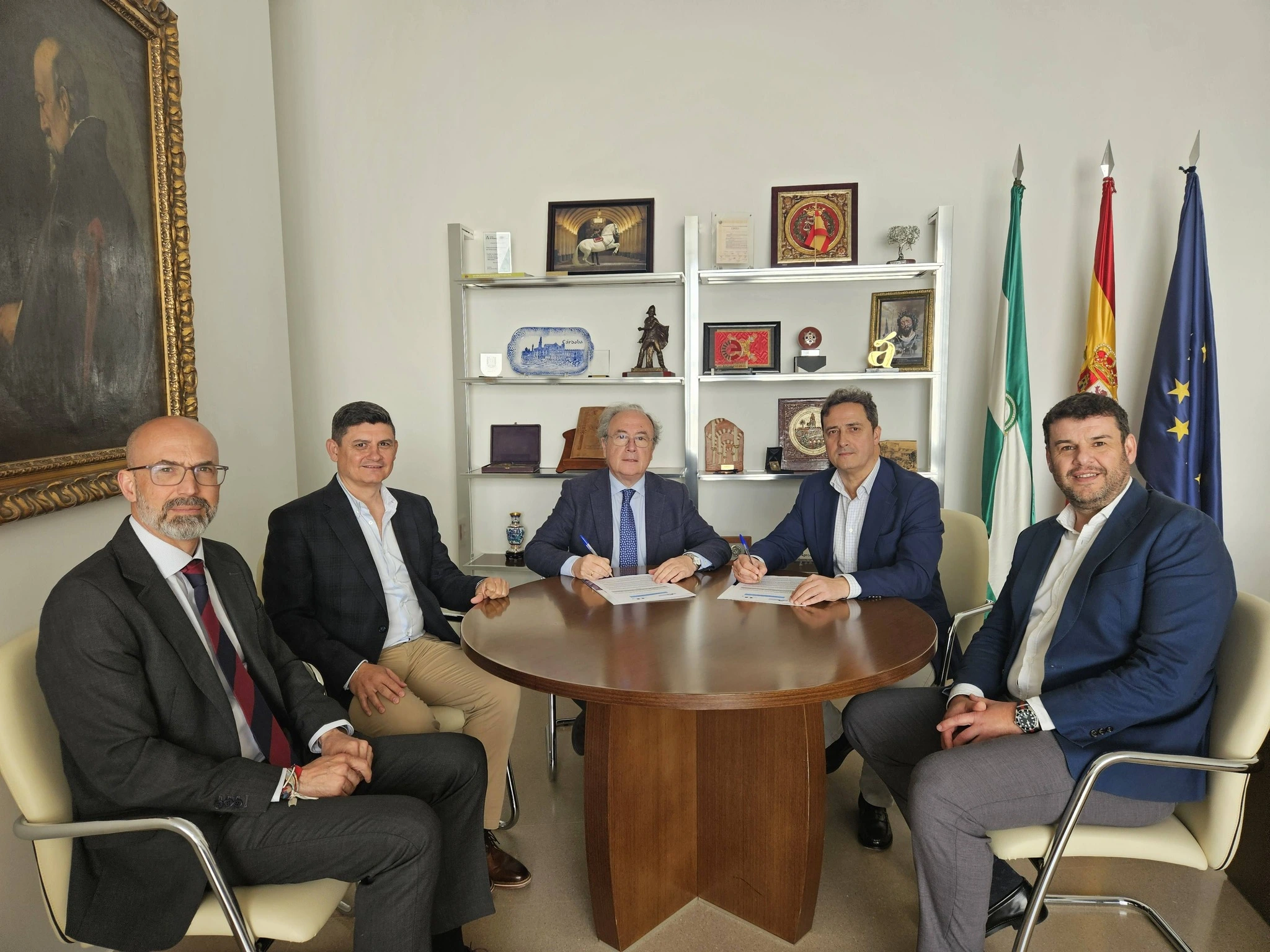 El presidente de la Confederación de Empresarios de Córdoba, Antonio Díaz, y representantes de Suma3, han suscrito con el acuerdo para su incorporación como miembro asociado a CECO.